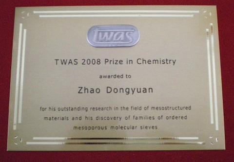新闻中心讯 2009年10月20-24日在南非举行的第三世界科学院(TWAS)第20届全体院士大会和TWAS第11届会议上,颁发了2008年度TWAS各个奖项。复旦大学赵东元院士由于在介孔材料合成结构方面作出了突出的贡献,被授予2008年度化学奖。届此赵东元院士成为我国第四位获得该殊荣的化学家。