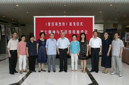 新闻中心讯 在中国共产党建党89周年之际,复旦大学党委宣传部、档案馆和出版社联合举行了“《复旦英烈传》首发仪式暨烈士精神与复旦传统座谈会”。校党委书记秦绍德在会前亲切接见了与会的复旦烈士的家属。副校长桂永浩到会并讲话。部分复旦烈士家属,“全国优秀教师”、“全国高校优秀思想政治理论课教师”等荣誉称号的获奖者、复旦历史系82级校友、上海大学李梁教授,以及校内有关部门负责同志参加座谈会。座谈会由校党委宣传部部长萧思健主持。