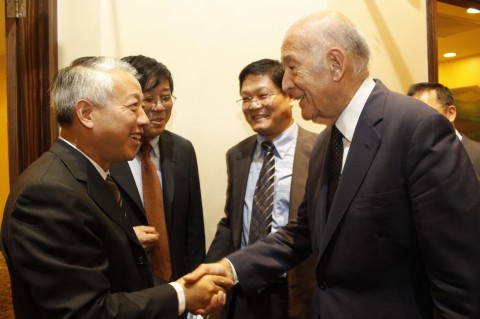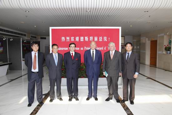 10月21日,已经八十高龄的法国前总统瓦勒里·季斯卡·德斯坦来复旦演讲,主题涉及亚洲在世界的地位、欧盟现下危机、中国与欧盟关系以及中国崛起的意义。这是事隔30年,德斯坦第二次访问复旦。演讲结束后,校务委员会主任、党委书记秦绍德教授会见并宴请了法前总统德斯坦及其随行人员。