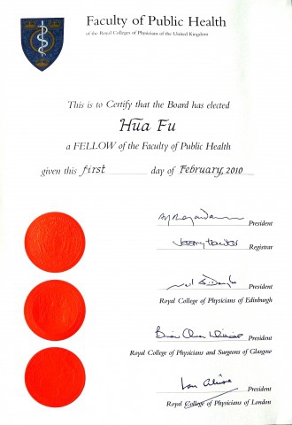 英国皇家内科医学院公共卫生学院成立于1972年,为英国医学专业学术组织,会员广泛来自临床、公共卫生、科研和政府决策等部门,成立的目标主要为公众利益促进公共卫生的发展,维护公共卫生实践和能力的最高标准,为公众健康问题提供权威指导和教育。其院士分为4级,分别是:MTD, FTD, HonMFPH和 HonFFPH,其中荣誉院士 HonFFPH为最高级,授予那些在公共卫生科学、科学文献和实践领域或对英国皇家内科医学院公共卫生学院有突出贡献的知名人士。