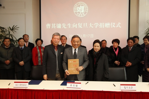 1月17日,曹其镛先生向复旦大学捐赠仪式在复旦大学光华楼东辅楼101报告厅举行。香港永新企业有限公司副董事长曹其镛先生向复旦大学捐资2000万人民币,用于建立“复旦大学中日青年交流中心”。