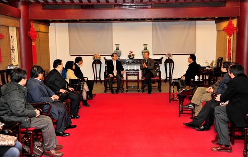 杨玉良在会见中,首先对蔡冠深校董一行专程来访表示欢迎,并对新华集团多年来支持学校发展表示感谢。他表示,复旦的国家“智库”建设需要各方共襄盛举,希望包括蔡校董在内的香港商界领袖共同参与,特别是支持、参与我校的金融研究中心和沪港研究所建设。