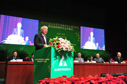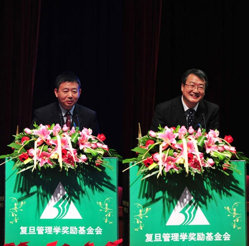 复旦管理学奖励基金会理事长、第十届全国政协副主席徐匡迪,复旦管理学奖励基金会副理事长、中国管理现代化研究会名誉理事长、第九、十届全国人大常委会副委员长成思危在当天的典礼上讲话,并为“复旦管理学杰出贡献奖”获得者颁奖。