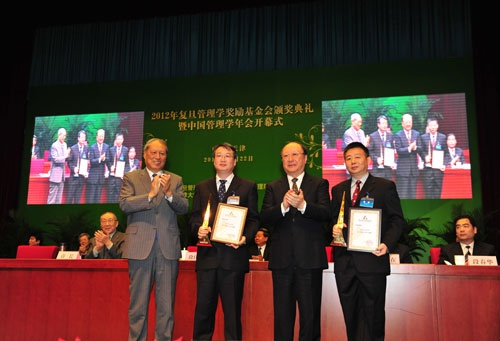 北京航空航天大学黄海军教授和中国科技大学梁樑教授,以其多年来在我国管理科学与工程领域的研究中所做出的卓越成就夺得了今年的“复旦管理学杰出贡献”奖。他们将分获每人50万元人民币的奖金。为了表彰对中国管理学学科建设、人才培养等方面做出开创性、奠基性贡献的老一辈工作者,今年,基金会专门增设了“复旦管理学终身成就奖”。被誉为“中国质量管理之父”的中科院数学与系统科学研究院研究员、中国工程院院士刘源张成为了该奖项的首位获得者,并被授予专门制作的金质奖盘。