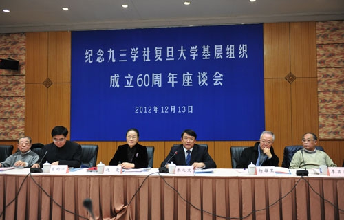 新闻中心讯 12月13日,我校在逸夫科技楼举行座谈会,纪念九三学社复旦大学基层组织成立60周年。九三学社中央副主席、上海市委主委、上海市副市长赵雯,中共复旦大学委员会书记朱之文出席会议并讲话。会议由九三学社中央常委、上海市委副主委、复旦大学委员会主委葛均波院士主持。