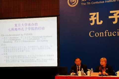 16日下午,我校在国家会议中心会议室召开了与我校合建的7所孔院的联席会议。杨玉良、冯晓源和外事处、国际文化交流学院的同志出席了本次会议。来自爱丁堡大学苏格兰孔子学院、诺丁汉大学孔子学院、法兰克福大学孔子学院、汉堡大学孔子学院、奥克兰大学孔子学院、悉尼大学孔子学院、斯德哥尔摩大学孔子学院的中外方院长和代表,分别就自己所在孔院的发展情况作了介绍,也提出了跟复旦大学进一步合作的要求与建议。