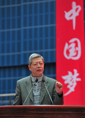 典礼的最后,杨玉良校长发表了讲话。他说,从开幕的短片到获奖学生代表的讲话,都深深感动了他。典礼既体现了国家对每一个青年学子的期待,也体现了社会各界以及校友们对在校学生们的一种希望,又提供了所有学生相互交流、相互激励的场合。他鼓励复旦学子勇敢去实现自己的梦想。他指出,大学阶段最重要的是学习,而社会服务也是很重要的学习过程,学习应该是一件乐在其中的事情。最后,杨玉良对所有获奖同学提出希望,希望将喜悦与所有人一起分享交流,在精神上得到更高的升华,将每一个复旦学子的梦想汇聚成复旦梦,汇聚成中华民族的梦,共同努力,为国家和民族的复兴作出更大的贡献。