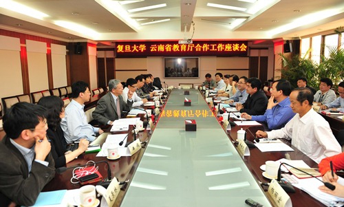 杨玉良强调,云南省地处西南边疆,连接东南亚、邻近南亚具有重要的战略位置,学校要把对云南省教师和干部在我校培训提高到政治高度。同时,作为中组部的培训基地,学校对云南省高级干部培训可进行菜单式课程设计,提高培训的针对性。在谈到滇西落后地区建立学生实训基地的设想时,杨校长感慨的讲述了复旦大学支教团在宁夏西海固地区帮助当地发展教育的故事,认为在落后地区建立实训基地对激发学生服务国家、服务社会的热情具有重要意义。