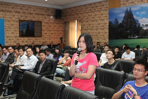 针对现场同学所提出的“徐州文化品牌塑造”、“老工业基地转型模式探索”、“人才引进、创业环境营造的制度探索”、“行政决策的科学化”、“改善基础教育”等问题,朱市长一一进行了详细生动的解答。他强调“资源不能锁在柜子里”,要将文化资源挖掘好、整理好、利用好,通过文化设施建设,培育文化产品等措施,将市民塑造成为有素养的市民,通过免费开放公园、艺术馆、博物馆等场馆,让百姓在家门口享受低成本的文化生活,使得文化不再是奢侈品。朱市长还提出通过产业转型、生态转型、城市功能转型的方针策略去解决“老工业基地转型”未来攻坚突破问题。最后,他对复旦的学子们提出了希望,指出一个人的才能体现在为社会、为国家所做的贡献上,徐州也会积极努力营造更好的环境吸引人才来到徐州创业发展、建设城市。精彩的回答获得阵阵掌声。