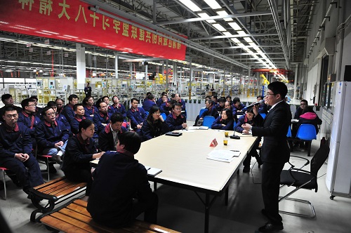 1-11月21日,复旦大学博士生讲师团成员哲学系葛骏亚在上海柴油机股份有限公司装配车间向一线工人宣讲十八大精神。葛骏亚结合自己专业研究方向,向工人们解读了科学发展观提出的十年间取得的成就和未来发展中面临的机遇与挑战。来自生产一线的近90名员工参加讲座活动。