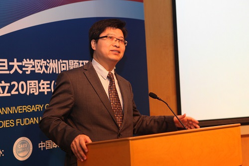中国欧洲学会会长、中国社科院学部委员、中国社科院欧洲研究所所长周弘,中国前驻德国大使、复旦大学特聘教授梅兆荣,复旦大学副校长林尚立出席了年会开幕式暨复旦欧研中心20周年庆祝仪式并致辞。欧盟驻华大使艾德和也给年会召开和复旦欧洲研究中心成立20周年发来贺信。复旦大学经济学院院长袁志刚、复旦大学欧洲研究中心主任丁纯在仪式上致答谢词。
