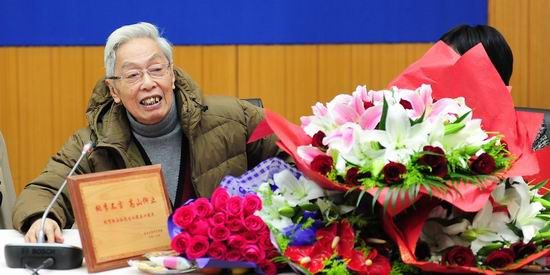 从1965年到现在,陆先生已经在三尺讲台上度过了四十多个春秋。座谈会上,外语教育界的同行、陆先生的学生争相发言,深情回忆与他共事、求学的点滴往事。有学生谈到老师恩情几度哽咽,有同事回忆起陆先生当年的帮助时深深鞠躬,同学们送来的鲜花摆满了陆老师面前的桌子。