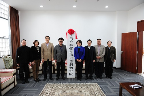 新闻中心讯 11月25日下午,上海高校张江协同创新研究院成立仪式暨工作推进会在我校张江校区举行。上海市副市长翁铁慧、市教委主任苏明、市科委副主任、上海市张江高新区管委会常务副主任曹振全、市教委副主任袁雯共同为研究院揭牌。市府副秘书长宗明、市经信委、市发改委、市教委及浦东新区政府相关负责人参加会议。我校副校长金力代表学校参加会议。