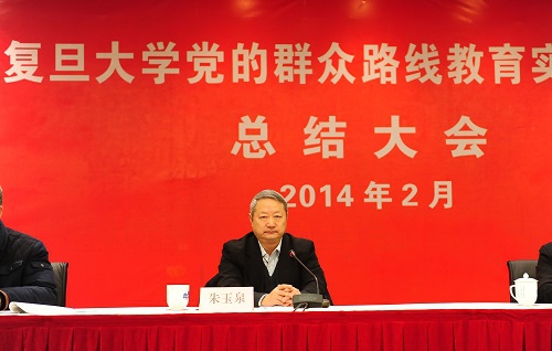 朱玉泉在讲话中对我校教育实践活动给予了充分肯定。他指出,复旦大学的教育实践活动深入扎实,从校党委到机关部处、院系各级领导认真履行主要责任人职责,切实把这项工作当作重大政治任务来抓,积极探索行之有效的活动方式,确保活动不走过场。开展活动时能够严把环节步骤,扎实创新开展学习教育,多渠道听取群众意见,认真撰写对照检查材料,深入开展谈心沟通,精心召开领导班子专题民主生活会,扎实抓好专项整改和建章立制。坚持把开展教育实践活动与推进学校改革发展事业结合起来,着力破解制约学校发展的瓶颈问题,有些工作已经初见成效,用看得见的工作成果取信师生群众。他特别提到,去年学校日常工作任务很重,大事多、急事多、难事多,学校注意通盘考虑,统筹协调,弹好钢琴,处理好开展教育实践活动与做好日常工作的关系,真正做到了两手抓、两促进。