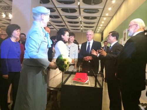 彭丽媛女士向孙建教授及丹麦主编表示祝贺