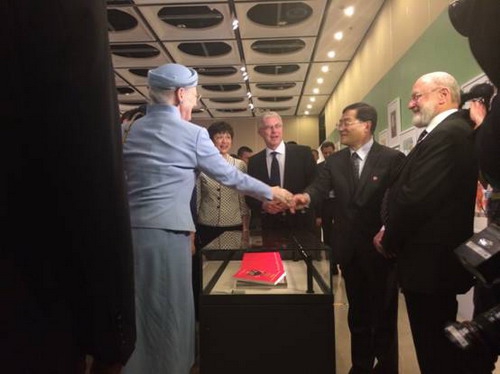 丹麦女王和孙建教授握手