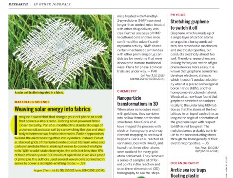 5月30日,《科学》(Science)杂志进一步以Weaving solar energy into fabrics为题对这项研究工作进行了专门报道,引发全球多个学术和公共媒体的热点关注。
