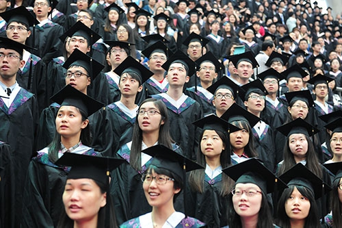 杨校长指出,复旦人应当努力成为一名知识分子,“知识分子应该是理性思维的楷模,守护理性就是守护知识分子的尊严,守护理性就是来创造一个大家都讲道理的社会环境。”要在当今社会守护知识分子的尊严,必须对自己提出更高的要求,要具有独立思考的能力,也要有道德的自律和道德的勇气,使知性与德性同在,对这个国家和社会负责、担当。他相信,经过复旦的训练,同学们已经认识到自己的责任,并且初步习得了担当的这种能力,这就是复旦给予毕业生所特有的印记。