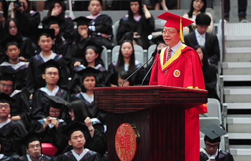 毕业典礼的最后,杨玉良校长在全场雷鸣般的掌声中,发表了演讲,寄语全体毕业生,在走向成熟的过程中不失纯真与热情,在对学校的依恋与未来的憧憬中对自己、对社会都有所期许。