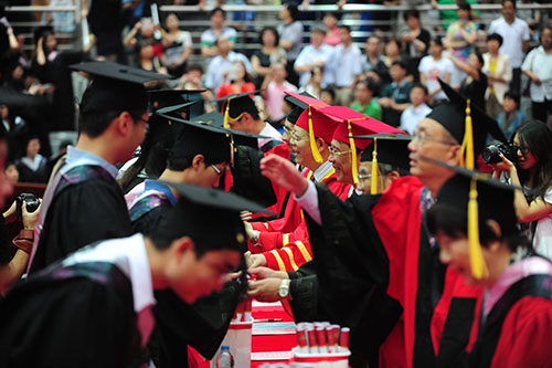 毕业难忘师恩。副校长陆昉教授宣读了“我心目中的好老师”名单,这些老师由全校的毕业生投票选出,其中既有为本科生授课的教师和班级导师,也包括辅导员老师。2014届毕业生代表为好老师献上鲜花,深情拥抱。2014年“我心目中的好老师”、物理学系金晓峰教授在当天的毕业典礼上寄语2014届毕业生。