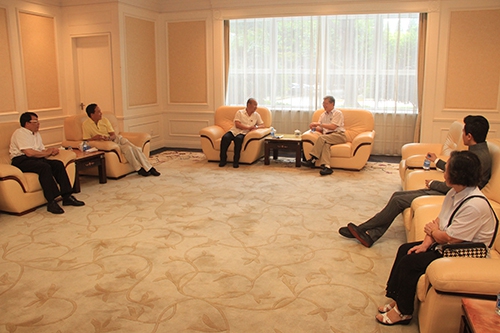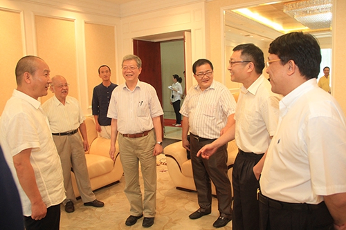 陈东、王建军一行还在校党委副书记刘承功的陪同下观看了我校纪念邓小平同志诞辰110周年图片展。