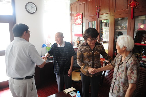 新闻忠心讯 9月9日,在第30个教师节来临之际,上海市副市长翁铁慧、校党委书记朱之文、市教卫党委书记陈克宏、市教委主任苏明、校党委副书记刘承功等来到复旦第九宿舍,亲切看望我校经济学院退休教授余开祥老师和师母,祝愿他们健康长寿。
