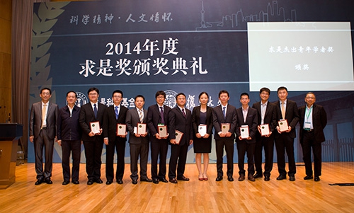 2014年度“求是杰出科学家奖”被授予清华大学物理系薛其坤教授。2014年度“求是杰出青年学者奖”被颁发给董斌、熊宇杰、张川、赵俊、李健、吴晨、颉伟、陆朝阳、宋吉舟、杨越十位优秀的海归青年学者。
