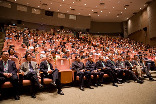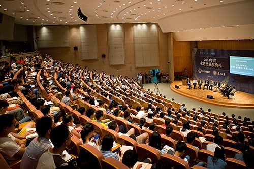 求是科技基金会顾问、2014年度“求是杰出科学家及杰出科技成就集体奖”评审委员会成员、部分以往求是奖获得者以及复旦大学师生共400人左右参加了本次庆典。