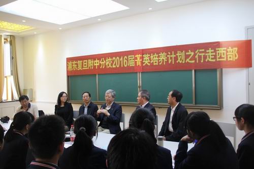 2014年9月23日下午,正在甘肃河西学院参加“甘肃省高等学校校长论坛”的复旦大学杨玉良校长专程前往张掖中学,看望正在此处进行社会实践的四十三名浦东复旦附中分校的老师和学生。