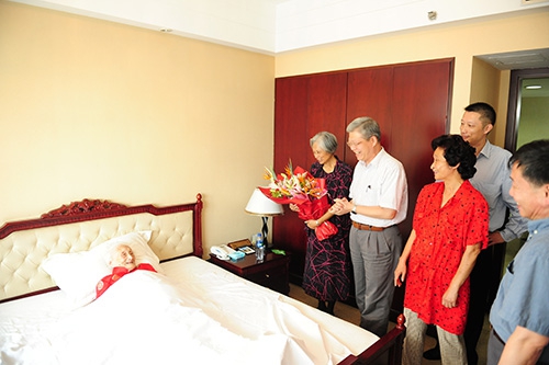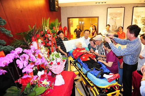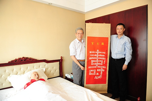 10月2日,是复旦大学创始人马相伯先生嫡孙女、马玉章先生的百岁寿辰。贺马玉章先生百岁寿诞晚宴在复旦大学卿云宾馆举行。晚宴前,复旦大学校长杨玉良看望百岁老人马玉章先生,送上来自全体复旦人的崇高敬意和良好祝愿,并赠送了百枚寿章组成的百寿图卷轴。复旦大学副校长冯晓源、丹阳市人民政府副市长许伟、马玉章长女马百龄等出席祝寿晚宴并致辞。上海市民革主委董波、上海市民宗委副主任王君力,徐汇区文化局局长欧晓川,丹阳市教育局局长韦立忠,以及华东医院、复旦学校办公室、复旦党委宣传部、复旦新闻学院、复旦统战部、复旦大学校友会、复旦基础教育联盟相关学校、向明中学、徐汇中学、大境中学的相关负责人,以及马玉章先生的亲朋好友等百余人欢聚一堂,衷心祝愿马玉章先生福如东海,寿比南山。