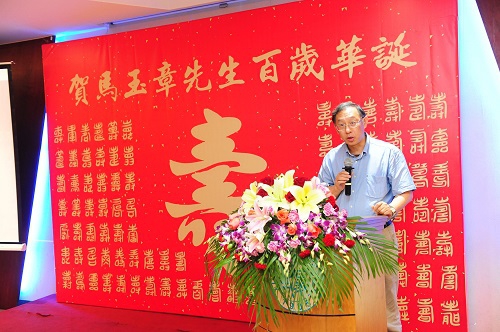 马玉章先生生于1914年,其祖父是中国著名教育家、复旦大学创始人和震旦大学首任校长马相伯先生。马玉章和马相伯共同生活了25个春秋,她目睹或亲历了这位著名“爱国老人”的许多重大政治社会活动。作为一名复旦校友,马玉章先生是为数不多尚仍健在的复旦百余年校史的见证者。老人身体硬朗,2005年曾作为重要嘉宾出席复旦大学百年校庆。在今日庆典上,马玉章先生长女马百龄介绍了马玉章先生的百年历程。