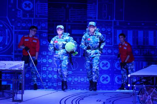 从本届中国校园戏剧节的初赛到复赛,再到刚刚结束的决赛演出,《天之骄子》历经整整两载,易稿数十次。《天之骄子》由复旦大学艺术教育中心讲师周涛担任导演、编剧,为使剧情更真实、角色更有血有肉,周涛在2013年暑期带领演职人员采访了我校参军大学生;不畏酷暑,深入军营一线采风,观摩参军学生的学习、训练、文体活动等,将在军营中感受到的一点一滴转化为舞台上的一言一行。演职人员均由复旦剧社的同学担任,共二十四名演员、十余名工作人员,涵盖了从本科生一年级到研究生三年级的复旦剧社优秀青年力量。在两年来的编演过程中,《天之骄子》先后在复旦校内和上海戏剧学院公演,导演周涛老师每次都根据演出效果和各方意见完善剧本、丰富剧情,同时演员们坚持每周2-3次的排练,从无怨言。临近11月4日的演出时,复旦剧社排练厅每晚都传出嘹亮的军号声,灯常常亮到凌晨,剧组所有成员牺牲了大量的休息时间,最终将一部恢弘大气而感人至深的《天之骄子》呈献在中国校园戏剧节舞台上,传递了复旦学子的正能量,收获了评委老师和观众的一致好评。