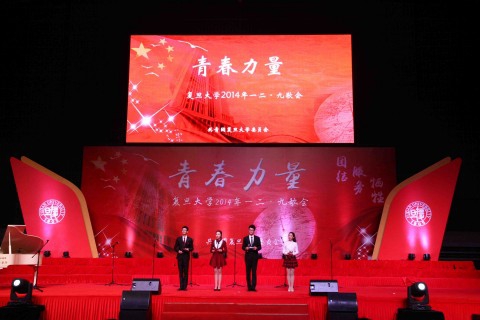 2014年12月9日,青春力量——2014年复旦大学“一二•九”主题歌会决赛在正大体育馆圆满落下了帷幕。复旦大学校长许宁生老师,校党委副书记尹冬梅老师,以及学校各机关部处的有关领导老师出席了晚会。经过3个小时的激烈角逐,最终新闻学院斩获桂冠,连续第二年获得“一二•九”歌会金奖。