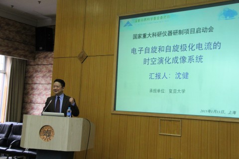1月13日上午,复旦大学物理系沈健教授主持的国家重大科研仪器研制项目“电子自旋和自旋极化电流的时空演化成像系统”启动仪式在逸夫科技楼二楼多功能厅举行,国家自然科学基金委领导、物理学专家、复旦大学校领导及相关部处负责人参加了启动仪式。