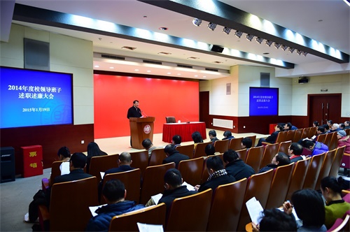 他从五个方面总结了2014年学校党委和行政工作情况。一是深入学习贯彻党的十八届三中、四中全会精神和习近平总书记系列重要讲话精神;二是认真抓好教育实践活动整改和中央专项巡视整改工作;三是全面推进学校综合改革;四是加快推进学校各项事业发展;五是以改革创新精神加强和改进党的建设。他提出,2015年全校上下要继续保持冲劲和干劲,坚定信心与决心,以更加饱满的热情、更加务实的作风,推动学校各项工作再上新台阶。