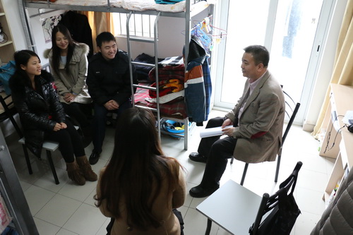 在之前的几天,其他校领导也分赴各个校区看望家庭经济困难学生,为他们送去学校的问候和祝福。1月9日中午,副校长桂永浩,前往枫林校区漕宝路公寓慰问9名家庭经济困难学生代表并和大家共进午餐。桂永浩副校长代表学校感谢同学们顾全大局,在枫林校区搬迁过程中给予学校充分的支持和理解,并鼓励大家增长理论知识的同时增加实践经验,将来成为优秀的医务工作者。1月13日上午,副校长金力分别到张江校区本科生和研究生宿舍看望8名家庭经济困难学生代表。金力副校长详细询问了同学们生活和学习情况,并和同学们分享了自己在科研工作中的感悟,鼓励大家刻苦勤奋、努力进取。当天中午,校党委副书记袁正宏以及相关部处负责老师与江湾校区8名家庭经济困难学生代表共进午餐。袁正宏副书记与学生代表们亲切畅谈,了解同学的学习和生活情况,并鼓励大家战胜困难和挫折,不断进步。