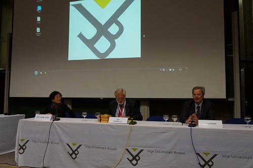 新闻中心讯 当地时间9月15日上午,“中欧40年:新型全面战略合作伙伴关系——中欧智库研讨会”在比利时荷语布鲁塞尔自由大学(VUB)开幕,本次研讨会由国家留学基金委和布鲁塞尔自由大学、复旦大学、中国人民大学和四川大学联合主办。中国驻欧盟使团团长杨燕怡大使、欧洲议会对华关系委员会主席莱嫩等出席论坛并讲话。校党委副书记刘承功率团出席论坛。杨燕怡在论坛开始前与刘承功一行亲切交谈。论坛由2014年中国政府友谊奖获得者、布鲁塞尔自由大学副校长Jan Cornels主持,我校国际关系与公共事务学院、经济学院、国际问题研究院、丝绸之路研究院、复旦发展研究院等的专家学者代表及外事处、孔子学院办公室、国际文化交流学院、外国留学生工作处等部门相关项目负责人和学生代表参加了论坛。欧盟委员会“让·莫内教授”、我校欧洲研究中心荣誉主任知名学者戴炳然教授主持了分论坛的学术讨论。