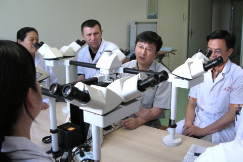 自2008年开始,我校附属肿瘤医院持续六年援助新疆医科大学第一附属医院(以下简称新医一附院)病理学科建设。肿瘤医院病理科的12位专家教授作为援疆干部,分批轮流“驻守”在天山脚下的新医一附院。如今,新医一附院病理科这个原本“不起眼的科室”,已建成新疆首个病理综合诊断平台以及能够辐射整个自治区的病理学高地,“金土地”也终于有了病理诊断“金标准”。