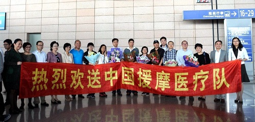 在此前举行的欢送会上,桂永浩副校长寄语我校援摩医疗队员们,在援外的两年时间里力争有所收获,不仅要全心全意为当地人民服务,而且要借助有利条件学习法语。同时,关注不同社会环境下不同人群的疾病谱,致力于掌握当地人民常见病多发病的诊治方法,不断提高业务水平,努力完成各项援外任务。