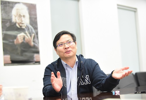 会议室的墙上,贴着一张爱因斯坦的海报。那是陈老师从爱因斯坦的母校瑞士联邦理工学院带回来的。他说,把爱因斯坦图像贴在这里,是为了让每位学生都能够“看到海报就知道自己应该干什么,要怎么努力,明白自己肩负的责任”。