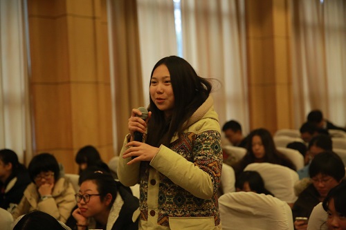六位教师的演讲结束后,学生们纷纷举手提问,与老师进行交流。有学生问道如何摆脱灌输式的新闻传播方式,而像春风化雨一般深入人心;还有学生就互联网时代隐私与公开的边界提出了自己的困惑。