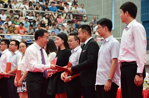 9月2日上午,我校2016级研究生开学典礼在正大体育馆隆重举行。来自世界各地的5000多名研究生新生参加了开学典礼。校党政领导,校学术委员会、学位评定委员会、教学指导委员会负责人,第七届“研究生心目中的好导师”代表、新任博士生导师代表,以及全校各院系和部分机关部处的负责人应邀出席。