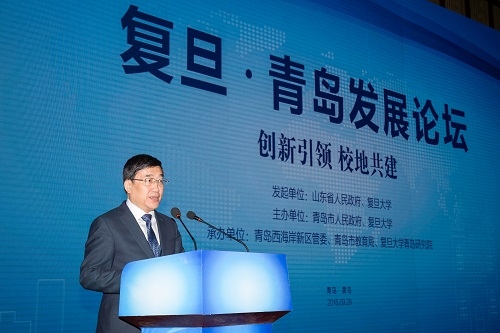 新闻中心讯 为了贯彻落实山东省人民政府和复旦大学签署的战略合作协议,率先实施山东省《关于深化科技体制改革加快创新发展的实施意见》,快速响应青岛市《关于深入推进科技创新发展的意见》,扎实推进复旦大学服务国家战略,9月29日,以“校地共建 创新引领”为主题的“2016(首届)复旦•青岛发展论坛暨复旦大学创新成果博览会”(以下简称“论坛”)在青岛西海岸新区举行。同日,复旦大学青岛研究院正式揭牌。