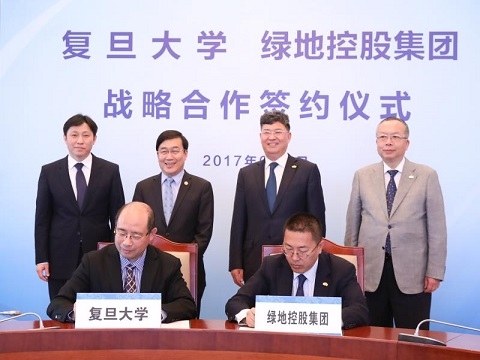 新闻中心讯 6月2日,复旦大学、绿地控股集团战略合作签约仪式在复旦大学光华楼举行。复旦大学与绿地控股宣布共同发起设立校企合作科技创新平台——“绿地光华科技产业集团有限公司”(以下简称绿地光华),加速推动复旦科技、产业优势与绿地资本、市场优势对接。