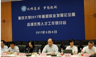 6月8日,“扎根基层 梦想起航”复旦大学基层就业发展论坛在逸夫科技楼举行。本次论坛旨在进一步加强校地合作,推动优秀人才的培养和输送,共同探讨新形势下推进毕业生基层就业和加强对选调优秀人才的培养关怀等工作的思路、举措,从而鼓励和引导更多优秀毕业生将个人发展同祖国命运紧密结合,到国家社会最需要的地方建功立业。本次论坛包括选调优秀人才工作研讨会,2017届赴西部、基层、国家重点单位就业毕业生出征仪式,以及主题报告“我们需要这样的选调生”三项内容。