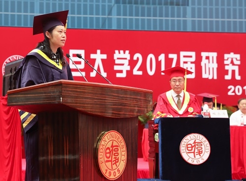 作为复旦大学“学术之星”特等奖获得者,哲学学院陈岘博士代表毕业研究生发言。他说,他将永远铭记母校博学笃志的校训,“感谢复旦,为我们亮起了这一座灯塔。我们收获的不只是知识,还有思想和精神的传递。”