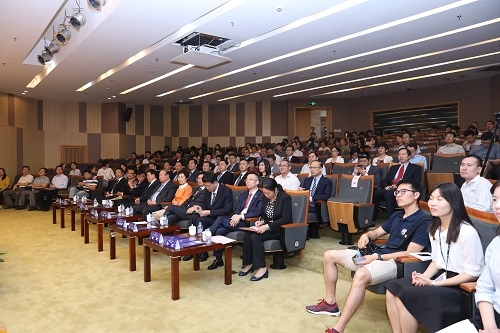 全国政协常委、中国泛海控股集团董事长卢志强,黄浦区委书记汤志平,黄浦区委副书记、区长杲云,上海市金融服务办公室副主任李军,中国泛海控股集团执行董事、执行副总裁余政,中国泛海控股集团董事、副总裁、董事会秘书徐建兵,通海建设有限公司董事长李强,黄浦区区委常委、副区长陈卓夫,复旦大学党委书记焦扬,校长许宁生,复旦大学党委副书记许征,复旦大学校长助理陈志敏,复旦大学经济学院教授洪远朋等嘉宾出席复旦泛海国际金融学院开办仪式。