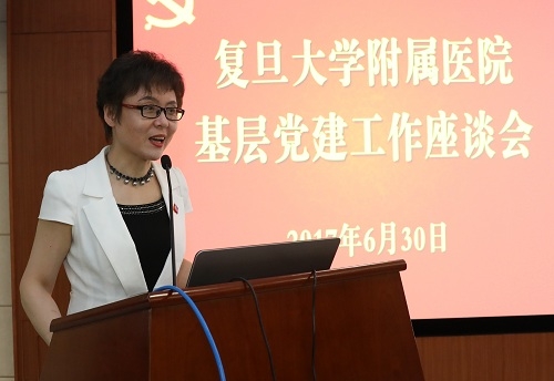 焦扬指出,党组织是事业的领导核心,共产党员是学校与医院建设的中坚力量。复旦大学党委高度重视附属医院工作,重视附属医院党的建设。希望各附属医院认真落实医院党委管党治党主体责任,进一步发挥医院党委政治核心作用,进一步加强医院职工和学生思想政治工作,牢固树立底线意识、责任意识,认真落实党风廉政和意识形态责任;进一步激发医院基层党支部的生机活力,选好“领头雁”,让支部书记队伍强起来。要落实好校党委提出的“双带头人”培育工程,运用创新支部设置机制、政策保障机制、工作激励机制、平台支撑机制和考核评价机制这“五大机制”,让党支部动起来、活起来;要持续加强医院医德医风和行风建设,突出问题导向,强化典型引路,注重机制建设;要以党的建设为医院事业发展保驾导航,在投身“双一流”建设、深入推进公立医院改革、推进医教研协同型健康服务体系、服务国家战略上多下功夫。她希望,各医院党委继续加强党的建设各项工作,为推进学校“双一流”建设,为办好人民满意医院、为建设健康中国、为上海加快建设亚洲医学中心城市作出新的更大的贡献,以各项工作的新成绩新进展迎接党的十九大胜利召开。