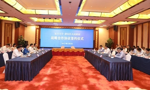 7月5日上午,复旦大学与静安区人民政府在市北高新科技园区签署战略合作协议。复旦大学党委书记焦扬、校长许宁生、常务副校长桂永浩、党委副书记许征,静安区委书记安路生、区长陆晓栋、副区长周海鹰,以及区、校双方相关部门负责同志共同出席和见证签约仪式。