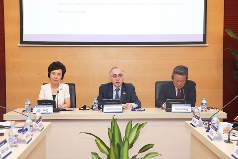 复旦大学党委书记焦扬、巴基斯坦伊斯兰共和国驻华大使马苏德•哈立德(Masood Khalid)出席研讨会并先后致辞。中-巴友协会长、联合国原副秘书长、复旦大学国际问题研究院名誉院长沙祖康,巴基斯坦卡拉奇商业管理研究院院长、巴基斯坦国家银行原行长伊什拉特•侯赛因(Ishrat
